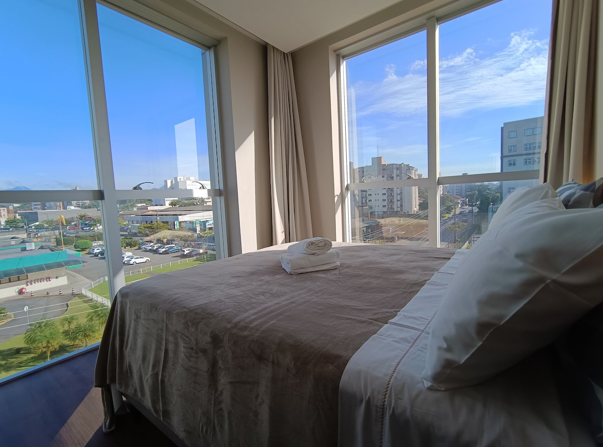 Apartamento confortável, bem planejado e com ótima estrutura para sua estadia. Está localizado em uma rua bastante movimentada, com tráfego de carros ao longo do dia e da noite. O espaço conta com porta de vidro, veneziana e cortina blackout para oferecer mais conforto. Ambiente organizado, com tudo o que você precisa para uma experiência prática e tranquila.