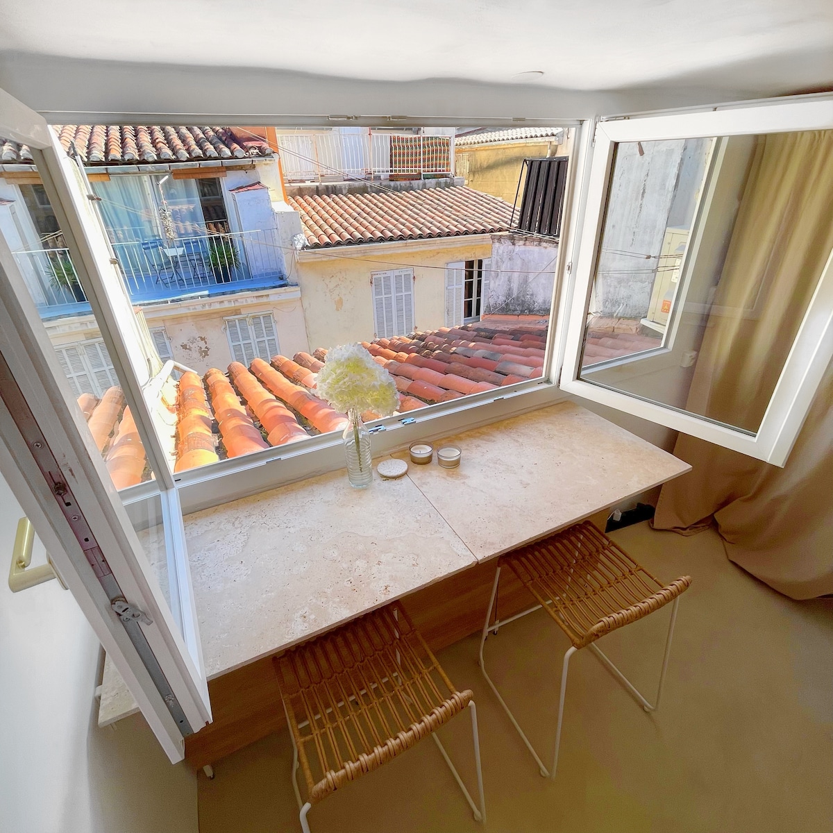 Localizado no 4º andar de um edifício típico no histórico e icônico bairro Le Panier, este apartamento recém-reformado combina charme e funcionalidade. Tem um belo teto de vidro no chuveiro que traz um toque industrial elegante, uma cama retrátil que oferece uma economia de espaço real, bem como uma mesa de travertino com vista direta para os pitorescos telhados de Le Panier. Um casulo brilhante e inteligente, ideal para desfrutar da autenticidade de Marselha.