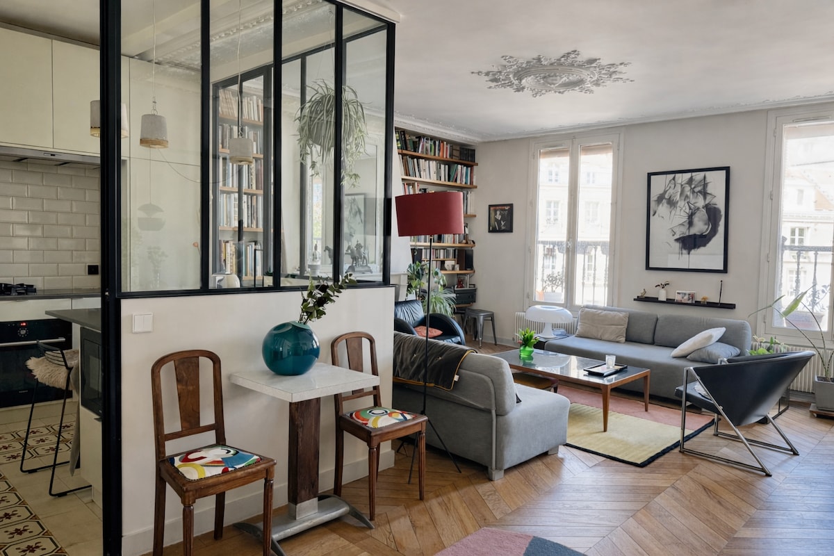 Welcome to your Parisian home away from home! This gorgeous and modern 50sqm apartment combines elegant design, modern comfort, and an unbeatable location : live on the real life set of Emily in Paris ! With two bedrooms, a stylish living area, a fully equipped kitchen and it's own cinema space downstairs, it’s the perfect choice for families or friends who want space and convenience. Enjoy your morning coffee before heading out to discover iconic landmarks by foot or metro.