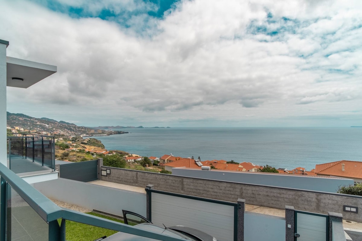 Espetacular vila panorâmica com vistas deslumbrantes para o mar, toda a Baía do Funchal e montanhas. Desfrute de vista completa de todos os quartos e sua refeição favorita no topo do oceano Acesso a toda a casa com garagem privativa e jardim A dez minutos da cidade do Funchal e a 2,8 km Especialmente para os fogos de artifício de Ano Novo, este é um dos melhores lugares em toda a cidade para esta celebração.