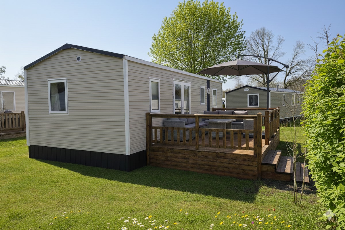 Casa móvel agradável e aconchegante em um parque de recreação acolhedor e tranquilo, Relaxe neste local encantador! No acampamento há uma piscina exterior, lagoa de natação, lanchonete, restaurante. Para os entusiastas do ciclismo e da caminhada, há muitas rotas do parque para descobrir a natureza! O trailer tem um terraço cercado de cerca de 60 cm de altura, bom para nossos amigos de quatro patas! Também há um galpão onde você pode armazenar/ carregar bicicletas etc. Há estacionamento disponível no trailer na entrada da garagem. ! O preço exclui as taxas do parque!
