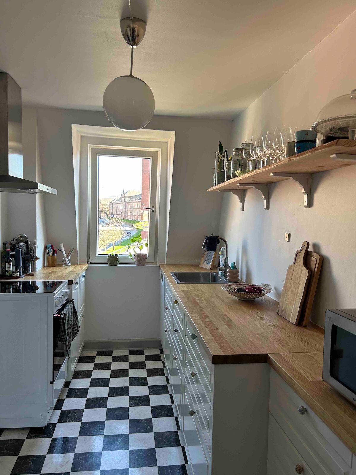 Apartamento elegante em Klostertorvet Perto de cafés, restaurantes e da vida da cidade – perfeito para explorar o centro de Aarhus e Aarhus Ø a pé. Acomoda 4 pessoas com uma cama de casal e sofá-cama para 2. Estacionamento privativo✅ gratuito (altura máxima de 2m, sem vans/micro-ônibus). ⚠️ Observação: localizado em uma praça animada; é possível que haja barulho no fim de semana.