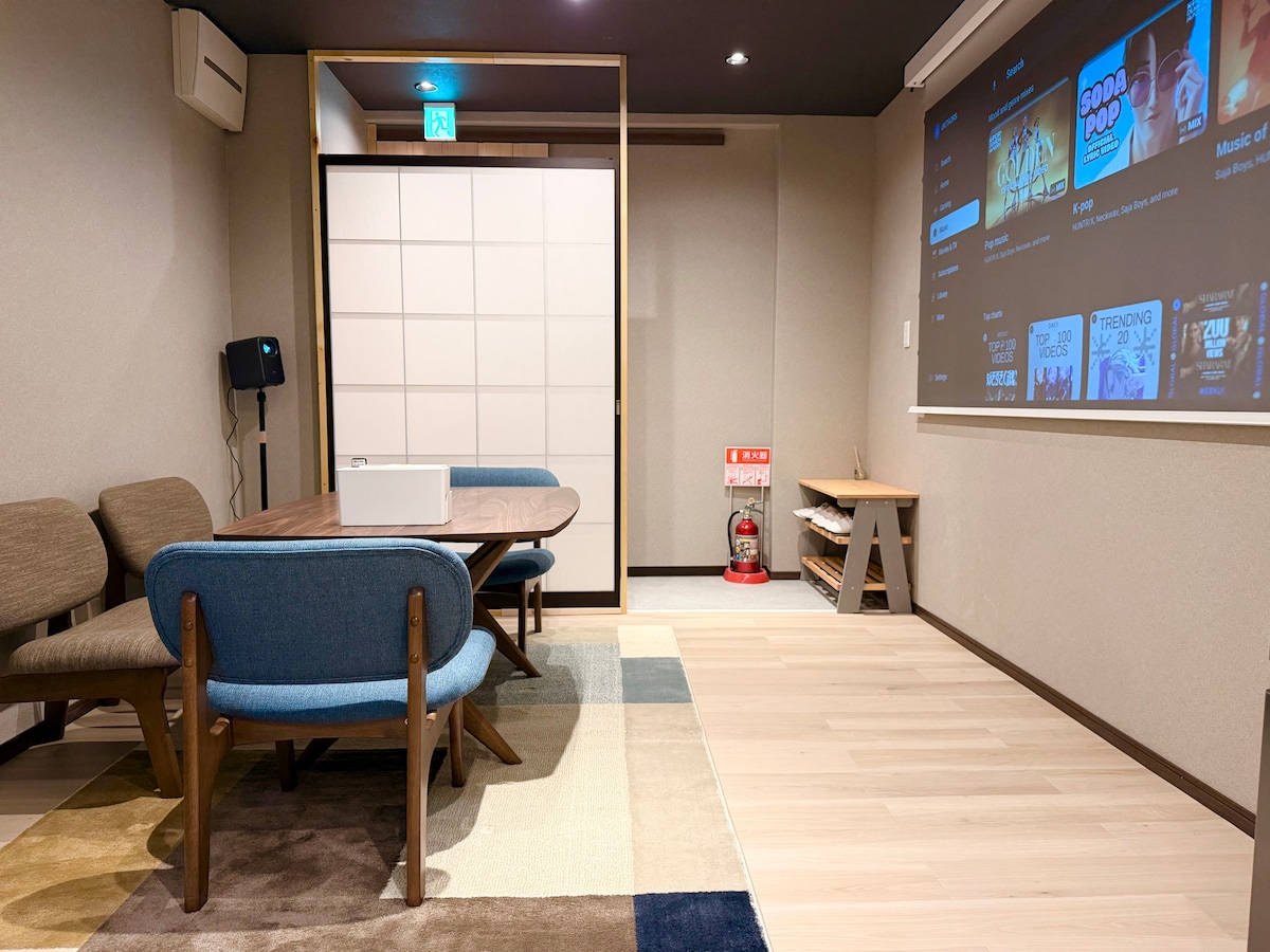 [100" Cinema Suite] A 2 minutos do novo Imajinomiya/Teatro com tela de 100 polegadas/Suíte espaçosa de 30㎡