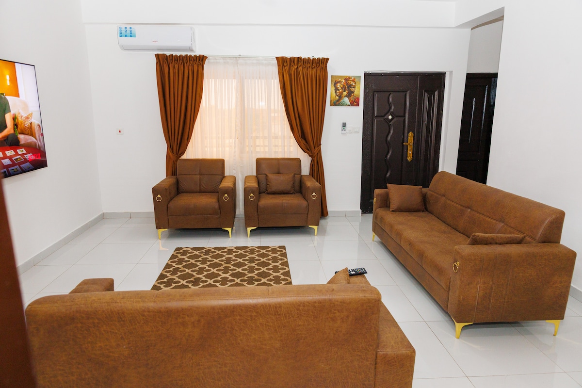 Relax in this spacious 3-bedroom en-suite apartment, perfect for up to 6 guests. Enjoy the peaceful atmosphere while being close to everything you need—fresh fruit, local snacks, and authentic cuisine just a short walk away. Convenience stores, pizza spots, and salons are only 5 minutes by car. Plus, in 15 minutes, you can visit the tranquil Aburi Botanical Gardens in Aburi. A perfect mix of comfort and convenience for your ideal getaway!