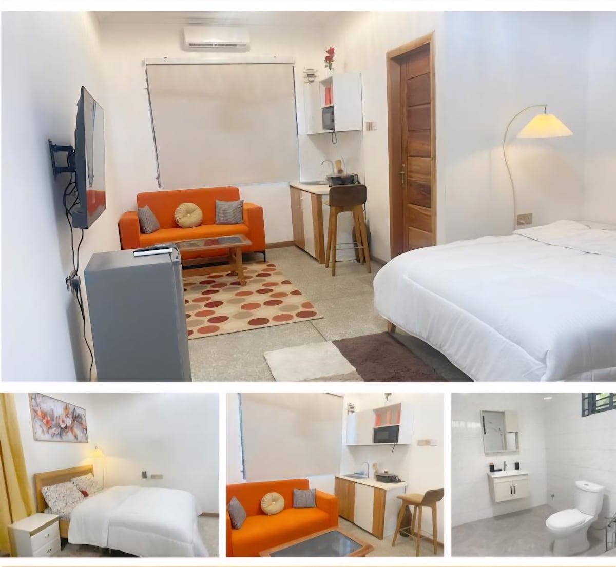 Bem-vindo ao seu aconchegante apartamento independente no vibrante Manet Court, Acra! Este espaço elegante dispõe de uma confortável cama queen size, uma kitchenette totalmente equipada e uma área de estar iluminada, perfeita para relaxar após um dia de exploração. Desfrute de comodidades modernas, como Wi-Fi, ar-condicionado e TV de tela plana. Convenientemente localizado perto de atrações populares e restaurantes locais. Quer esteja aqui a negócios ou a lazer, este apartamento é a sua casa ideal para uma estadia inesquecível!
