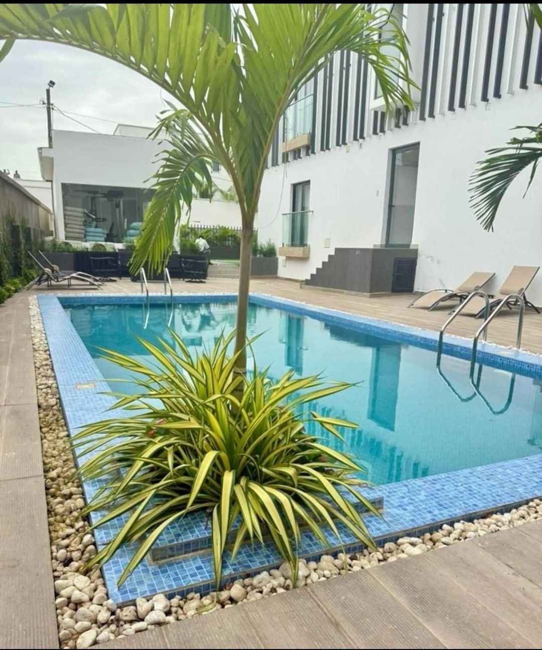 This modern 2 bedroom apartment is nestled in the high-end residential nook of Adjirigaanor. The space is stylish and spacious and comes with everything you need to feel at home; fitted kitchen with utensils and crockery, amenities such as an onsite gym, pool and terrace for alfresco dining. Property Managers onsite, 24/7 security and cleaning team stationed at facility. Less than 20 minutes from the Kotoka International Airport and within 5 minutes of restaurants and the bustling night life.