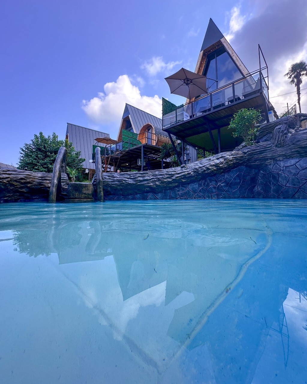 Cabin with jacuzzi in Photo park & swimming pool