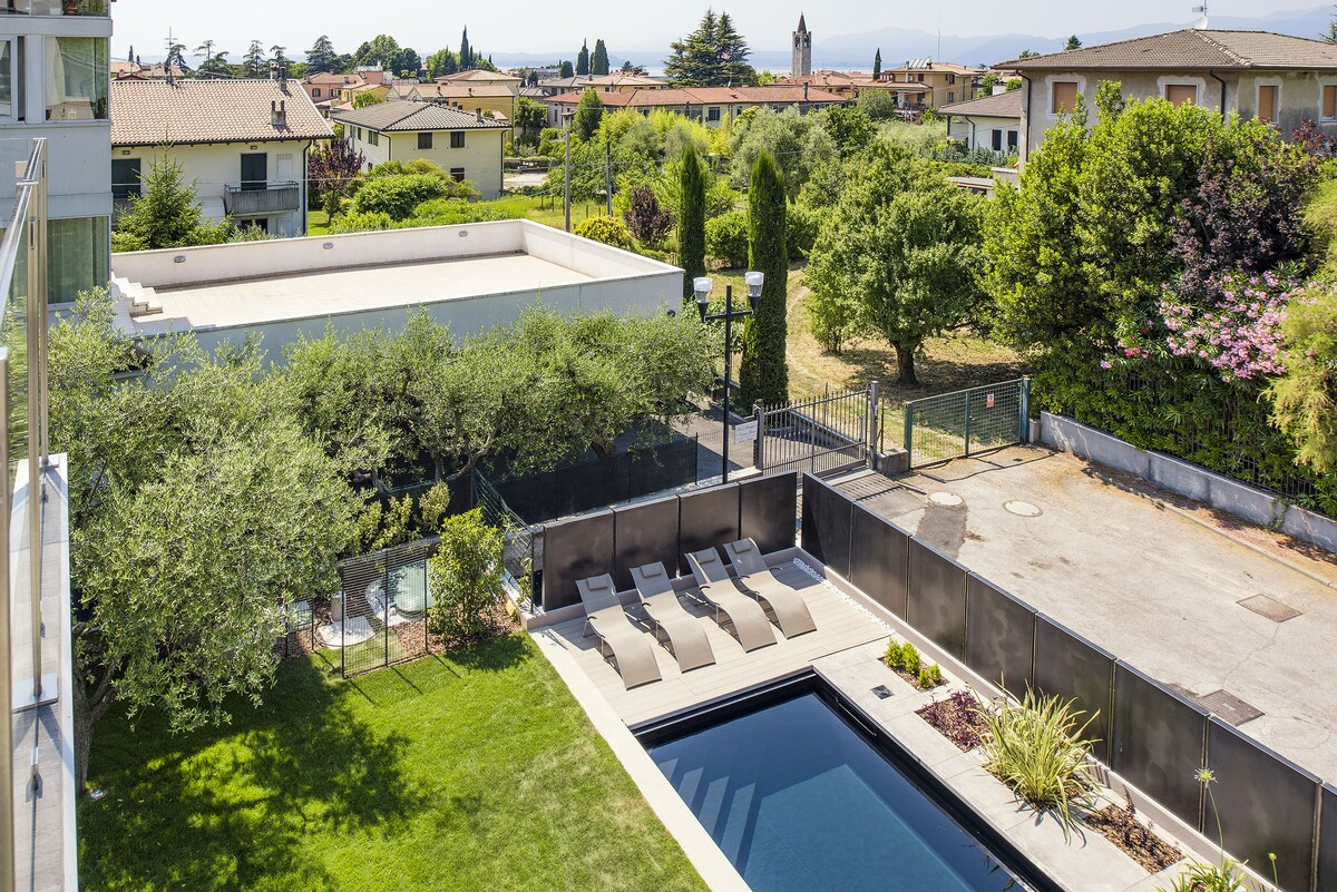 Piso térreo do centro de Bardolino com piscina e jardim