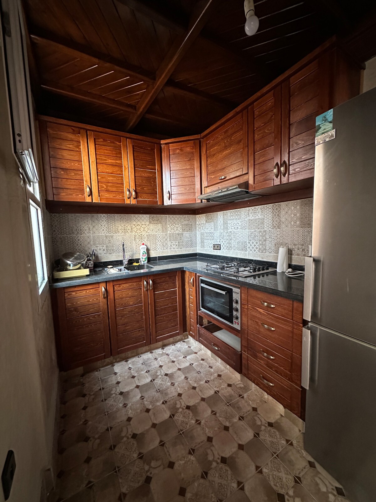 O apartamento oferece banheiro privativo e chuveiro com cozinha, apartamento de um quarto com uma grande sala de estar. No total, este espaço pode acomodar até 4 pessoas. Duas dormindo no quarto e outras duas no espaço da sala de estar que oferece duas camas de dormir. A casa oferece um belo e grande jardim com uma piscina com um incrível espaço de estar interno para ioga ou dança, onde fazemos eventos especiais às vezes, com terraço no telhado com vista para a cidade de Agadir a 20 km de distância