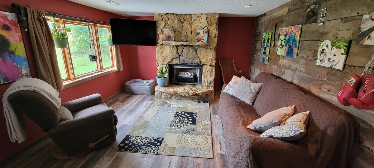 Apartamento de um quarto completamente mobiliado! Apenas a curta hora de carro ao norte de Kansas City e 32 km a leste de Saint Joseph! Localizado na pequena cidade de Stewartsville. Duas vinícolas e um laticínio (Shatto Milk Co.) nas proximidades. O quarto tem uma espaçosa cama king size, e a sala de estar tem um sofá-cama queen size. As comodidades incluem máquina de lavar, secar roupa, Wi-Fi rápido e uma televisão de tela plana de 65".