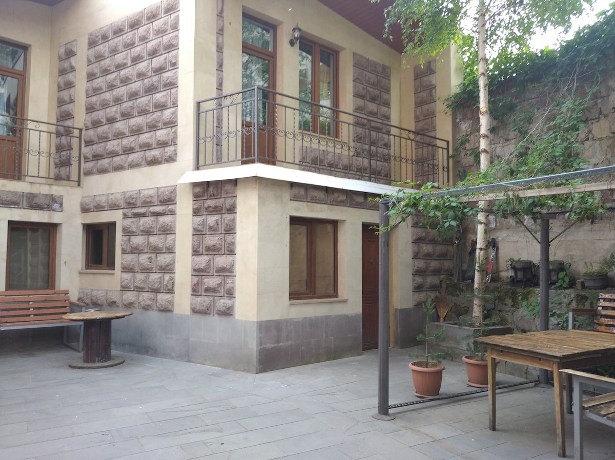 Bem-vindo ao nosso local acolhedor bem no coração da cidade, onde você pode mergulhar na beleza da floresta de Dilijan a partir da sua janela. Super perto de toda a ação da cidade, especialmente o restaurante Carahunge (apenas 3 minutos a pé) e o Parque Verev (um passeio de 5 minutos). No interior, temos tudo para tornar a sua estadia em Dilijan o mais confortável possível. Uma sala de estar fria, uma cozinha útil, um quarto aconchegante e, sim, você adivinhou - dois banheiros. Sua casa longe de casa espera por você!