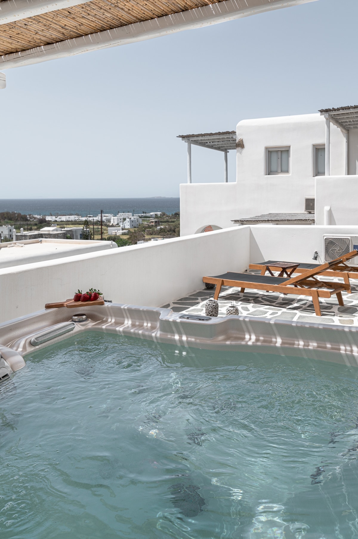 Descubra uma suíte à beira-mar totalmente renovada a apenas 5 metros da água, oferecendo uma varanda privativa com uma jacuzzi relaxante e vistas deslumbrantes do pôr do sol sobre o Mar Egeu. Entre pelo Island Bar, o famoso ponto de encontro de Naxos, para uma chegada única. Você vai adorar os toques de estilo cicládico, confortos simples e vistas infinitas para o mar durante todo o dia. É perfeito para casais, famílias ou amigos que procuram uma escapada verdadeiramente memorável na ilha.
