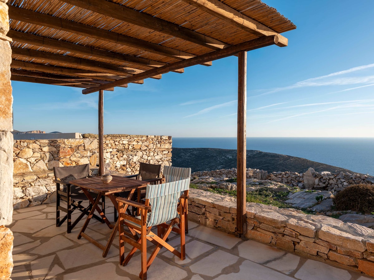 Fique em nossa bela casa de pedra recém-construída em Ano Meria, enquanto escapa para a tranquila e pitoresca ilha de Folegandros. Esta casa acolhedora apresenta arquitetura tradicional cicládica e foi decorada com uma mistura de toques vintage e modernos. Desfrute das vistas deslumbrantes das colinas e do mar a partir do espaçoso terraço e experimente a autêntica vida da ilha grega na pacata vila de Ano Meria. Explore as belas praias e trilhas de caminhada da ilha ou relaxe neste cenário idílico!