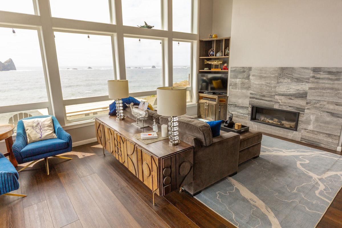 Todos vão adorar esta acolhedora e elegante casa à beira-mar no exclusivo Sebastian Shores Estates, a apenas 2 minutos ao sul de Gold Beach. Oferece vistas incomparáveis de todas as janelas da praia de areia localizada a poucos passos de distância. Adormeça com o som das ondas quebrando ou relaxe perto do fogo. Esta casa tem todas as comodidades que você poderia querer, de roupas de cama de luxo, equipamentos de cozinha gourmet, Wi-Fi, TV a cabo, banheiros privativos, praia e jogos e atividades em casa.
