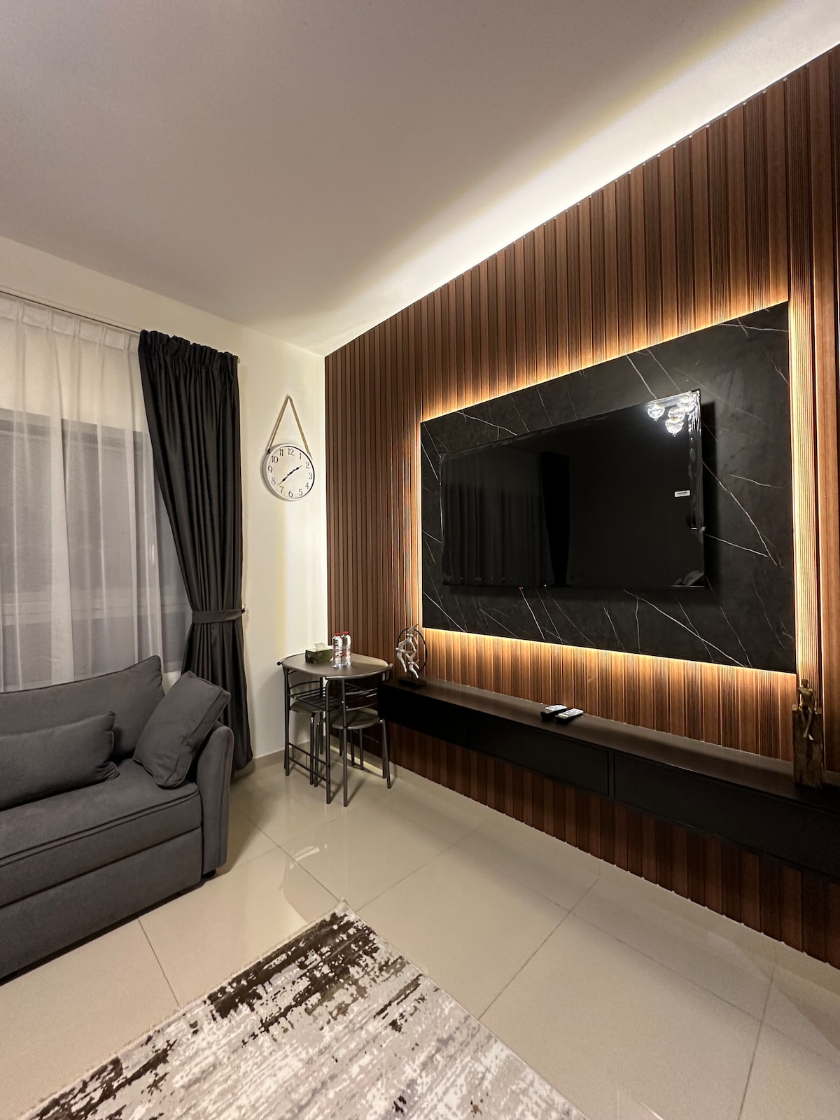 Bem-vindo ao nosso estúdio chique em Zahia! Perfeito para viajantes solitários ou casais, este espaço moderno dispõe de uma cama confortável, cozinha totalmente equipada e banheiro espaçoso. Desfrute de Wi-Fi de alta velocidade, TV de tela plana e ar condicionado. Localizado em uma área vibrante com fácil acesso a lojas, cafés e transportes. Reserve agora para uma estadia confortável e conveniente!