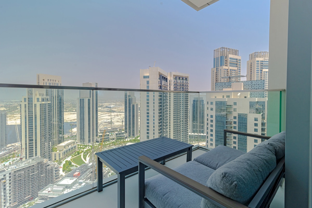 Este luxuoso apartamento de 1 quarto oferece uma vida confortável com todas as comodidades de que você precisa, localizado no The Grand em Dubai Creek Harbour, uma área incrível em Dubai. Aproveite o acesso gratuito a uma piscina aquecida com vista, academia e estacionamento gratuito. A sala de estar tem um sofá confortável e TV HD com Prime Video e AppleTV+ para você! A varanda abre uma VISTA INCRÍVEL. O apartamento está TOTALMENTE EQUIPADO com tudo o que você poderia precisar e estamos felizes em fornecer o que for necessário durante a sua estadia!