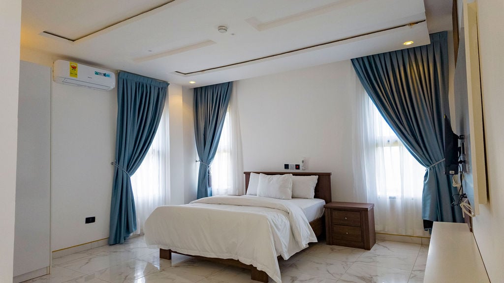 Welcome to Jayjordans Apartments, a luxury 3-bedroom short-stay apartment nestled in the peaceful hills of Aburi. Guests booking the full property enjoy the entire apartment with complete privacy, featuring 3 bedrooms on the second floor, spacious living areas, a fully equipped kitchen, and modern en-suite bathrooms. The apartment comfortably hosts up to 6 guests. Only the property caretakers are present on site to assist when needed.