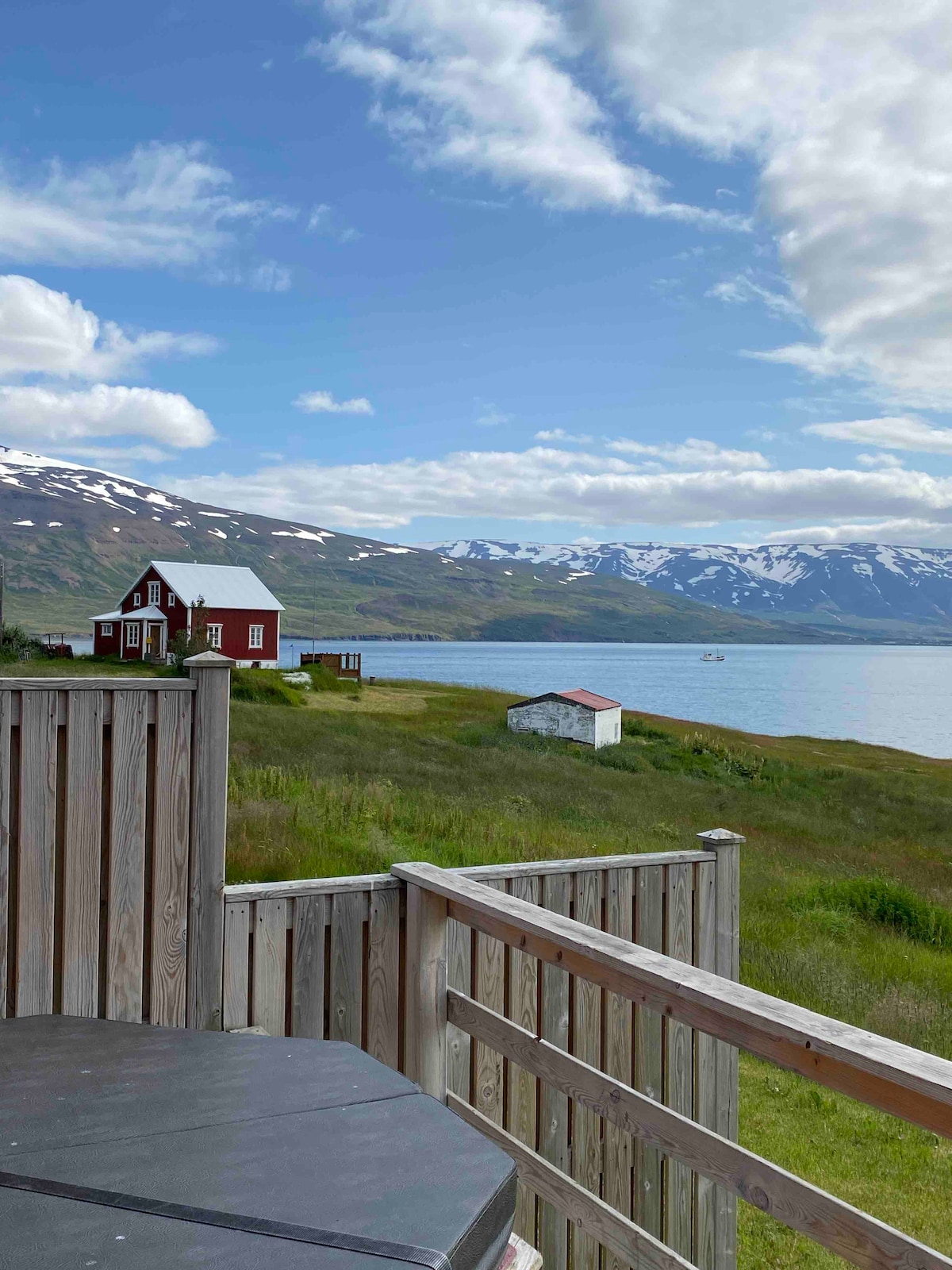 This modern and privately owned 106 m2 luxury cottage is located right above Akureyri and has gorgeous views over town and the surrounding nature. The house comes with a fully equipped kitchen, flatscreen TV and Wifi, entertainment system/board games and a cozy indoor hot tub to relax in after a long day.