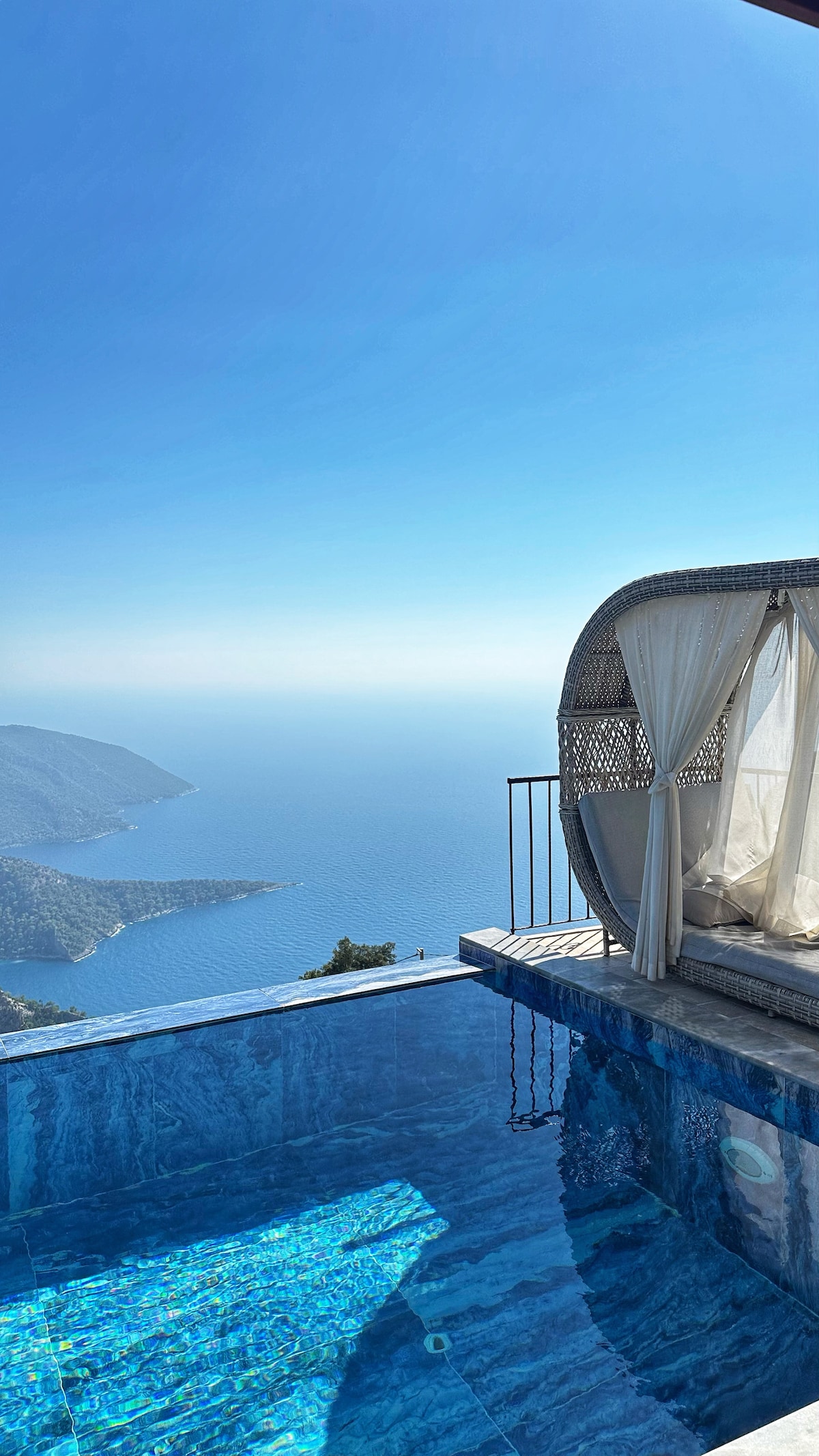 Blue Bungalow airbnb, onde somos inspirados pela natureza em Kayaköy, Fethiye, que pode acomodar tudo o que você espera de uma casa com seus itens confortáveis, uma piscina protegida, arquitetura privada e uma localização perto de todas as áreas de férias em Fethiye.