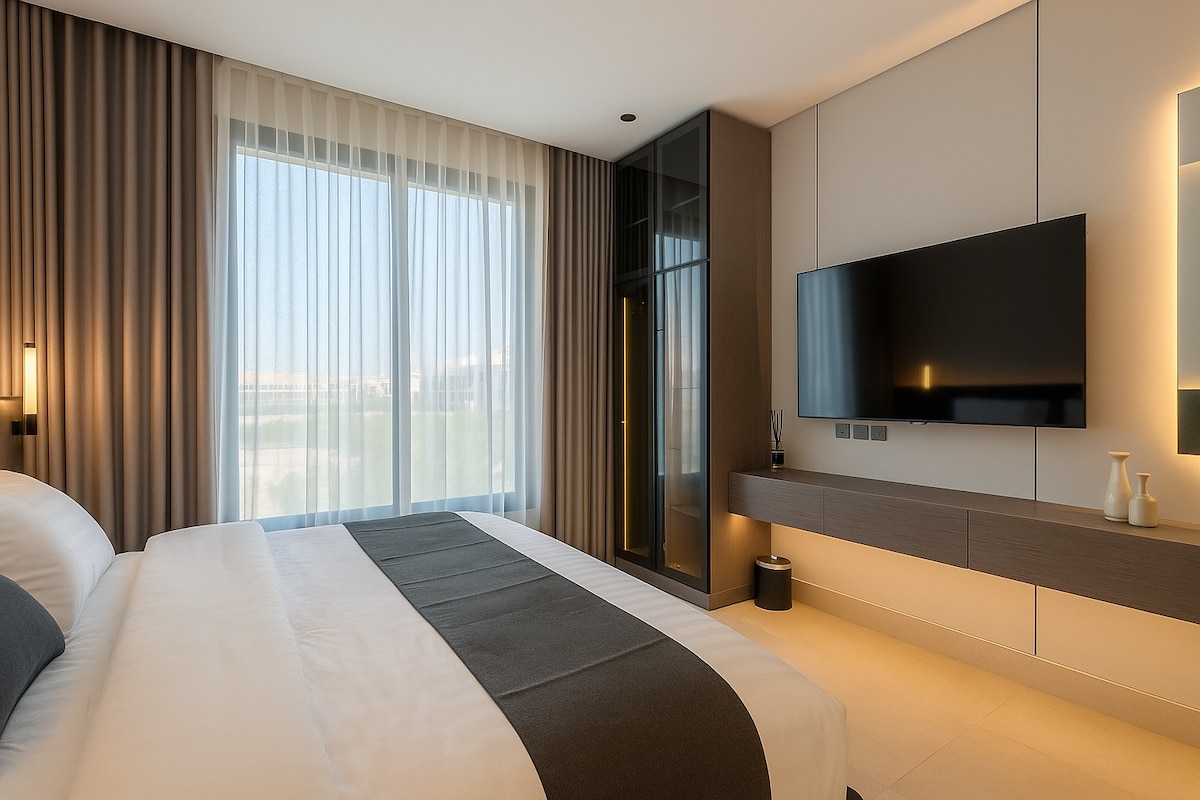 Desfrute de uma estadia confortável em um apartamento moderno de 2 quartos e sala de estar espaçosa, design elegante e detalhes de hotel. A cozinha está equipada com todos os eletrodomésticos básicos para facilitar a sua estadia diária, com uma bela varanda que adiciona um toque de tranquilidade e conforto. Ideal para famílias ou viajantes a negócios e turismo, combinando conforto, privacidade e localização privilegiada