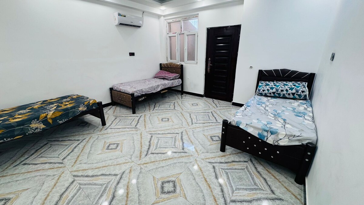Novo apartamento independente para aluguel disponível em Karbala. - Acomoda de 4 a 6 pessoas - Cozinha e banheiro separados, sem compartilhar com ninguém - 10 minutos a pé do santuário (2 minutos a pé do primeiro ponto de controle) - Recepcionista 24h no andar de baixo - Apartamento boutique - Painéis solares 24h para eletricidade Apartamento no 1º andar -2 camas e 4 colchões disponíveis Localização privilegiada ao lado da estrada principal, onde todos os TukTuks e Táxis estão disponíveis e lojas 24/7 estão disponíveis a uma curta caminhada.
