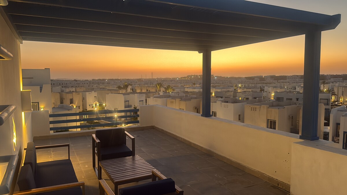 Have fun with your family and friends at this amazing waterfront elegant property. This is a 3 bedroom chalet that has been set up in a way to offer you an AMAZING and UNIQUE experience. Enjoy the sunken seat area from the comfort of your private garden only a few steps away from the beautiful crystal clear waters of the Mediterranean sea. 🌊 ✨ Time to create special memories! 🏖️ 🇪🇬