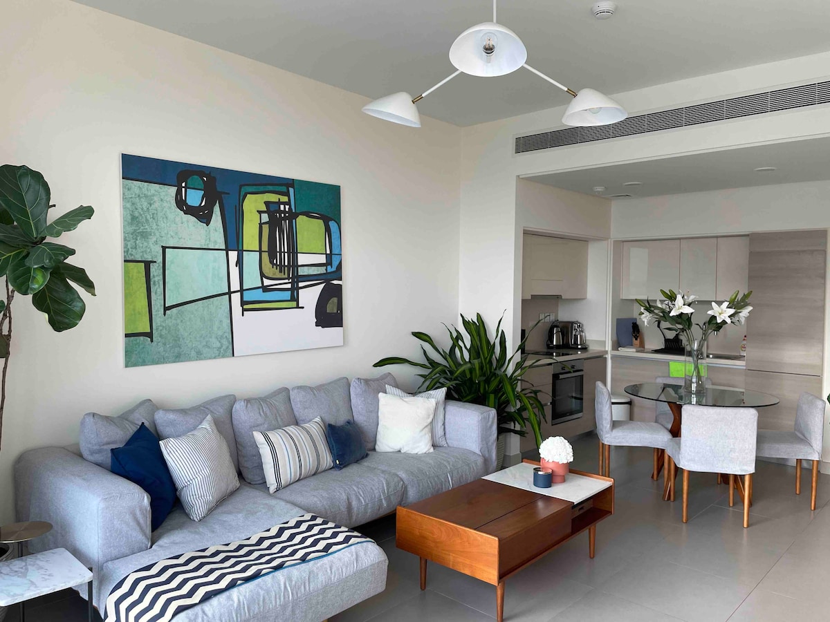 Um apartamento contemporâneo e acolhedor de 2 quartos em um edifício familiar com funcionários acolhedores, serviço de limpeza e serviço de recepção e segurança 24 horas. Adequado para crianças e bebês. Uma caminhada de 3 minutos levará você diretamente a cafés internacionais, restaurantes, supermercados 24 horas, quadra de paddle e muito mais ao ficar neste lugar bem localizado no coração (Busaiteen). 5 minutos de carro do The Avenues -10 minutos de carro do aeroporto - 10 minutos de carro do coração de Manama.
