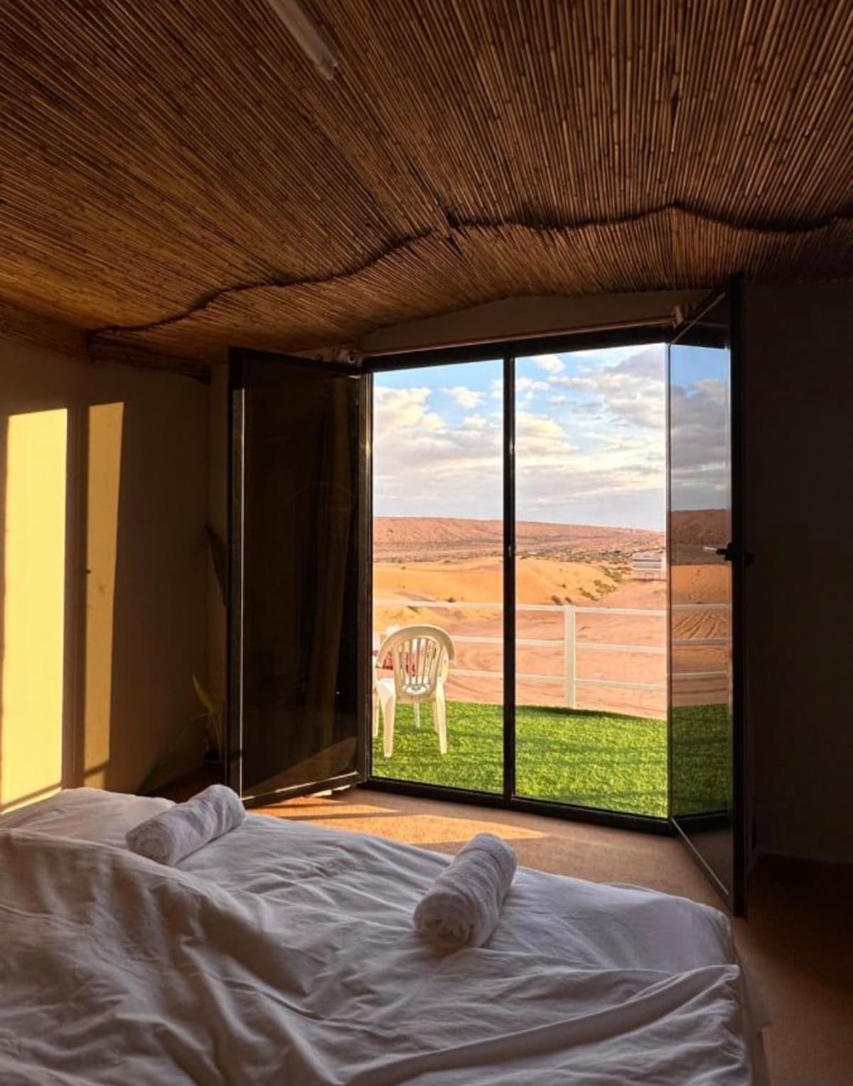 A primeira cúpula de vidro em Omã. Experimente ficar no deserto árabe (Bidiyah) e dormir sob as estrelas, a casa de férias oferece uma experiência única, está aberta à natureza e vistas, mas ainda oferece privacidade, o chalé tem dunas de areia próximas (+20m de altura) onde você pode caminhar e desfrutar da vista, relaxar ou pegar o escorregador de areia fornecido e se divertir, falando em diversão, 4 tipos de jogos de tabuleiro também estão disponíveis. À noite, você tem a chance de fazer um churrasco, pois há uma churrasqueira no quintal.