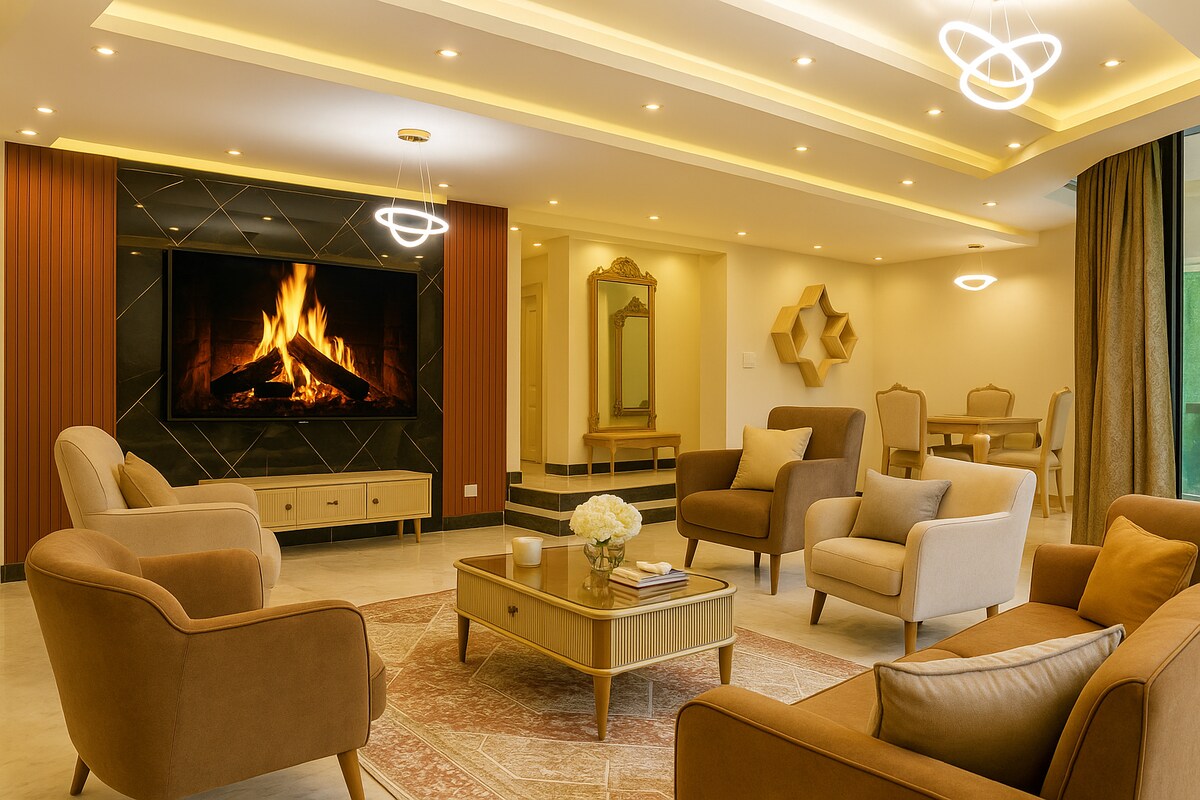 Fique a apenas 1,4 milhas (7 min) do Aeroporto do Cairo, com uma bela vista do aeroporto e do jardim da frente, tudo sem ruído de aeronaves. Traslado 🚖 gratuito do aeroporto e traslado de volta acessível disponível 🔑 Self check-in com seu PIN privado Wi-Fi ⚡ rápido para trabalho ou streaming 🚗 Uber 24h à sua porta 🥘 A poucos passos (1–3 minutos a pé) de restaurantes, cafés, supermercados