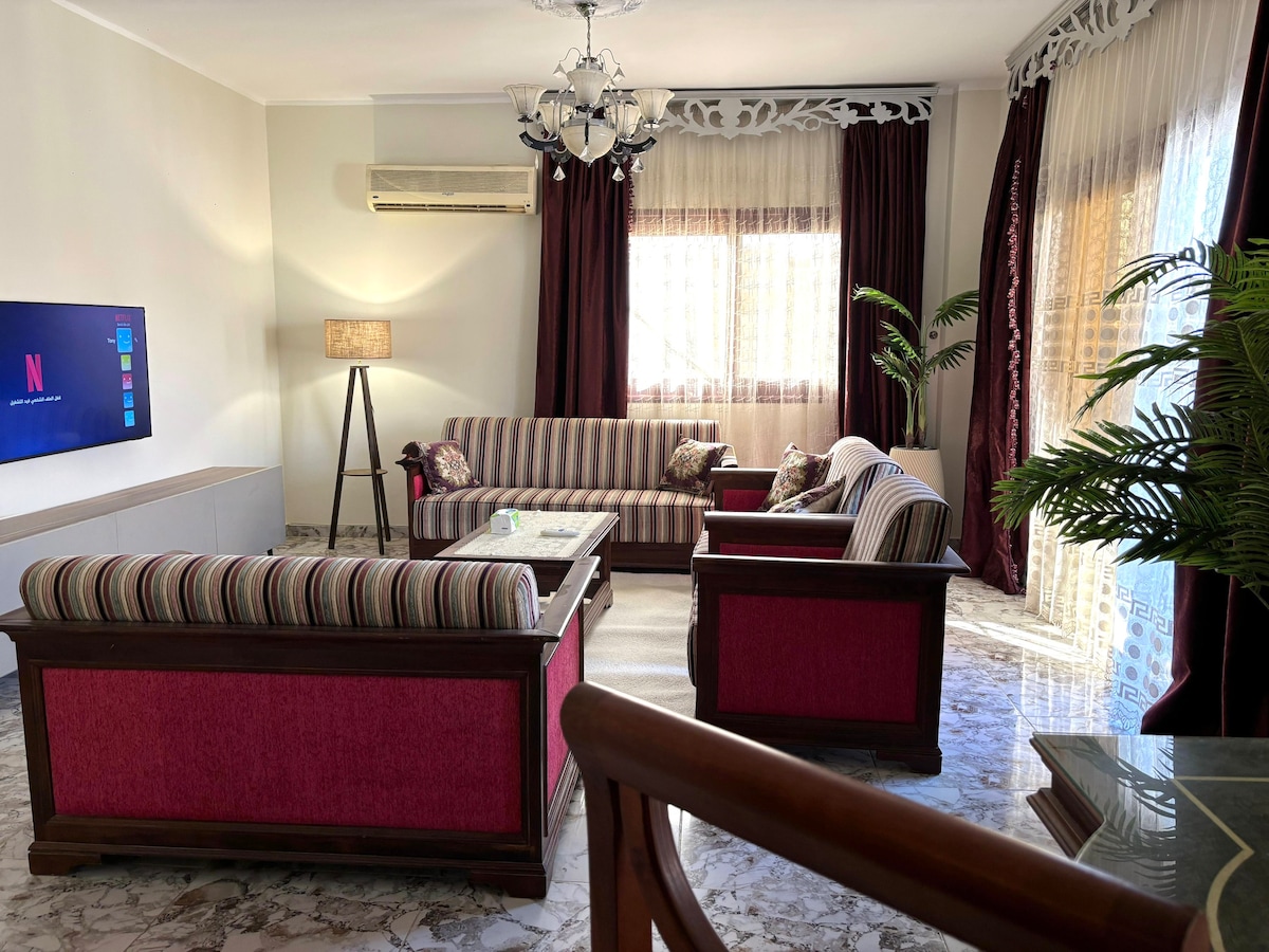 It feels just like home. Located in the middle of new Cairo. 5-10 minutes to AUC ,FUE, Waterway, Garden8, Rehab city , Marv mall, Cairofestival city , Riverwalk , O1 mall. Also very close to Shifa Hospital ,Air force specialized hospital , located at a very quite, safe and clean neighborhood. 20 minutes away from Cairo International Airport. The apartment is operated by its owner who lives in the same building to provide the best hosting experience.