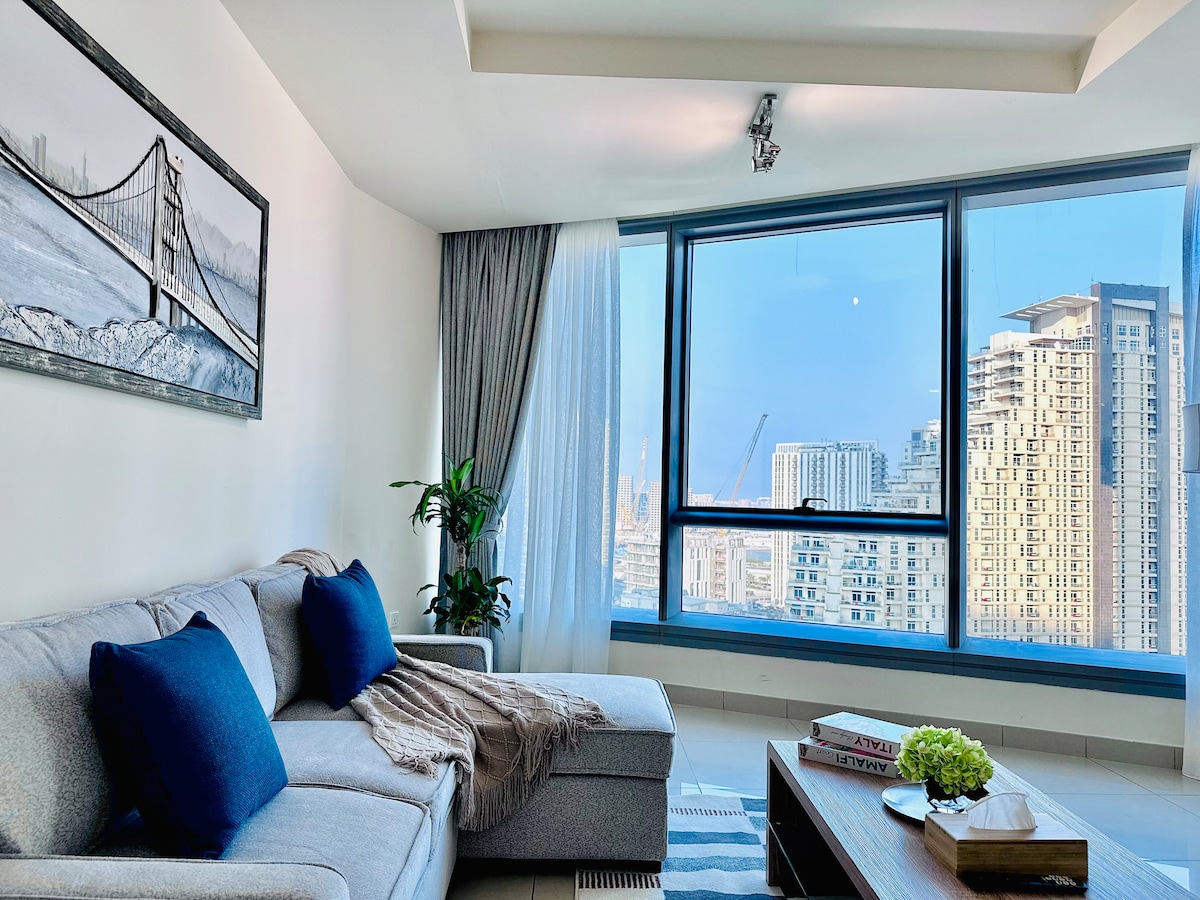 An award winning multipurpose five star developments, A cozy fully furnished, swimming pool & sea view, the living hall has built-in wardrobes for storage, high speed internet is connected, Bose solo, TV cable, siemens cooker & dishwasher, LG Washer dryer, Hitachi refrigerator, the Ikea bed with Ikea mattress & Pad, Ikea sofa bed, recliner chair, Building have 6 lifts and 1 service elevator, Recreational in the podium 3 swimming pools, 5 gym, table tennis and more. feel free to ask me.