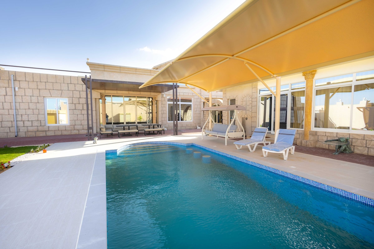 Enjoy staying in this spacious detached villa right on Maarid Beach. The villa is opposite the best beach in Ras Al Khaimah (RAK), with scenic views of mountains, desert and sea! We are also 10 -15 minutes from old-town RAK (Nakheel) and RAK Mall. Enjoy the peace and serenity of RAK whilst just being an hour's drive from the glitz and shopping in Dubai. Ras Al Khaimah is also slated to offer the UAE's first Casino, and you have easy access to Marjan Island and shopping at Al Hamra Mall.