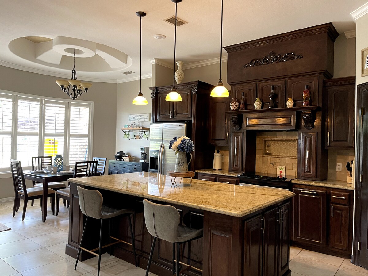 Fique em sua própria casa privativa de 1 quarto com duas unidades de ar-condicionado potentes, quintal cercado e estacionamento para dois. Perfeito para viagens rápidas ou viagens de negócios a poucos minutos de McAllen. No interior, você encontrará uma sala de estar aconchegante, cozinha completa/espaço de jantar, cama king size e banheiro moderno com Wi-Fi e self check-in fácil. Perto do Main Event, Top Golf, aeroporto, Plaza Mall, Bert Ogden Arena e muito mais — apenas 1 hora e 15 minutos da Ilha South Padre. Mais de 70 avaliações de 5 estrelas. Limpo, privado e conveniente — SEM taxa de limpeza.