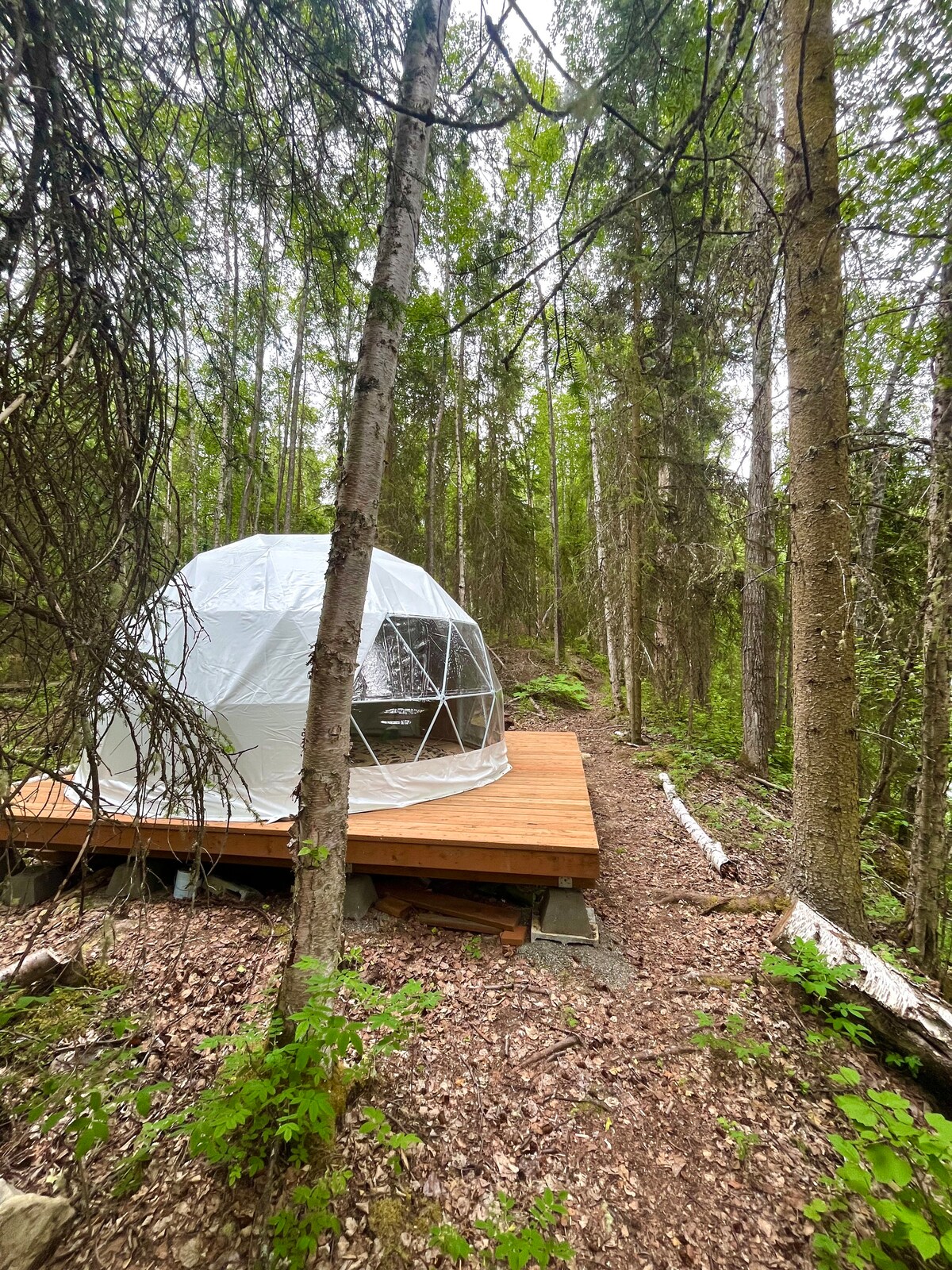 Cúpula de acampamento de luxo isolada ao lado da bela Barbara Falls. Desfrute de 10 acres de propriedade privada aninhada ao longo do Rio South Fork com acesso a várias trilhas a partir da sua porta. Traga um saco de dormir ou cobertores e aconchegue-se na cúpula depois de um dia explorando a área do Parque Estadual de Chugach. Mergulhe em uma área isolada sem o incômodo de montar um acampamento. Este anúncio não oferece banheiro, eletricidade, Wi-Fi ou outros confortos típicos de uma casa.