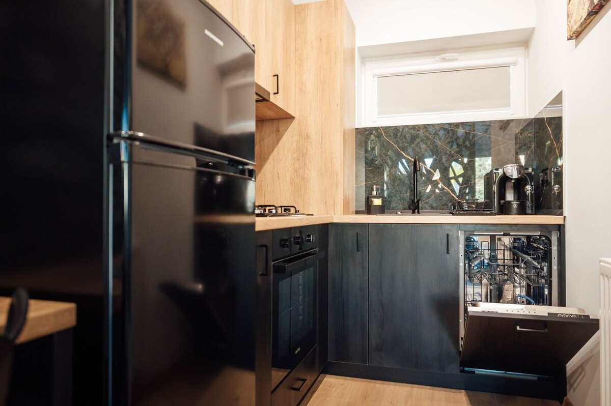O apartamento está localizado no piso térreo em um prédio de quatro andares, é composto por 2 quartos, equipados com TV de tela plana, Wi-Fi gratuito, cozinha bem equipada com máquina de lavar louça, talheres, louças, cafeteira, torradeira, chaleira, geladeira e um banheiro com banheira, com secador de cabelo, toalhas e produtos de higiene pessoal gratuitos. O apartamento também está equipado com máquina de lavar roupa com secador, ferro e tábua de passar roupa. Café e chá gratuitos são fornecidos!