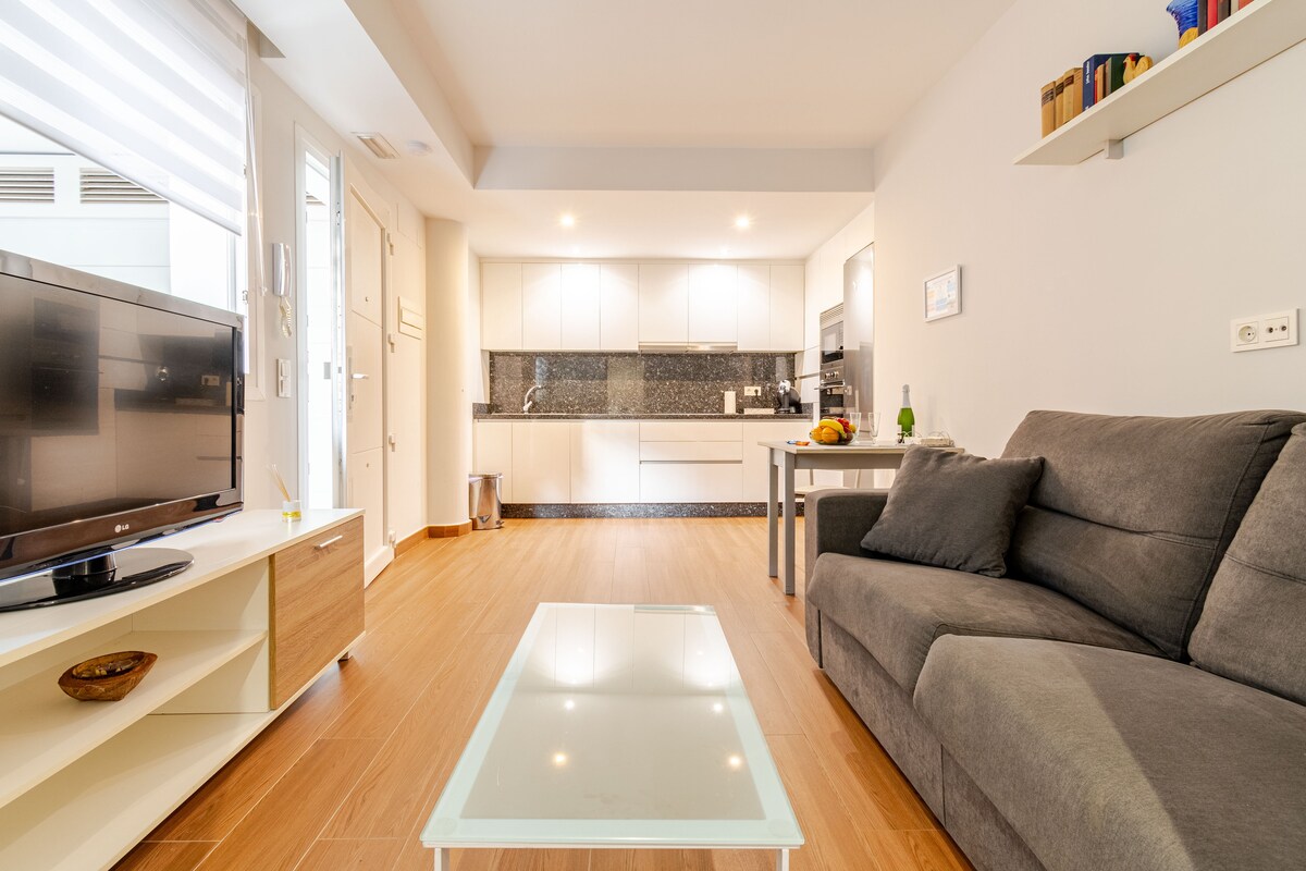 Dentro do terreno da nossa casa, reformamos este lindo apartamento de um quarto em um estilo aberto e moderno. O apartamento tem entrada independente, cozinha e banheiro, espaço para trabalhar e uma sala de estar aberta para o quarto. Também tem um pátio para poder estar ao ar livre, janelas luminosas e tudo o que você precisa para relaxar Está localizado no cinturão da cidade, fácil acesso com transporte público (ao lado do metrô e ônibus) ou carro (área de estacionamento gratuito)