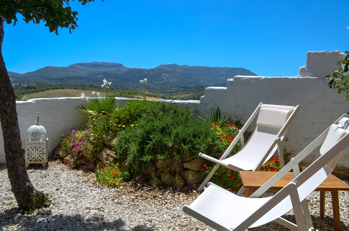 Acorde com vistas deslumbrantes à beira do centro histórico de Ronda! Nosso estúdio brilhante e elegantemente renovado está perfeitamente posicionado à beira do centro da cidade de Ronda. Aproveite o melhor dos dois mundos: fácil acesso ao coração vibrante da cidade e vistas espetaculares do bairro de São Francisco e das montanhas dramáticas da Serranía. O estúdio dispõe de um jardim privado — seu próprio refúgio tranquilo — onde você pode relaxar enquanto contempla a histórica cidade velha e a natureza ao redor.