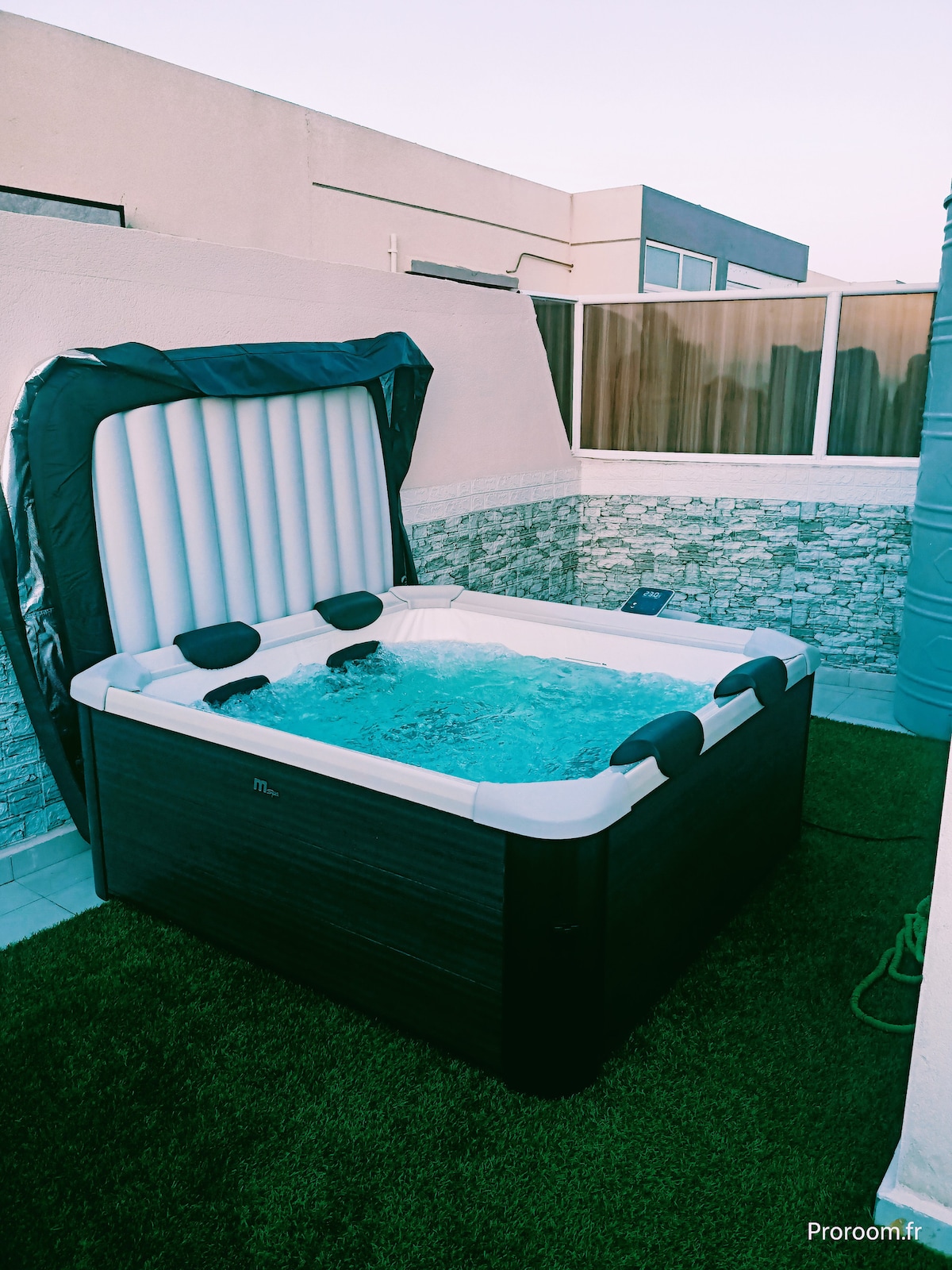T2 avec jacuzzi + hammam a – 10 min de l'aéroport