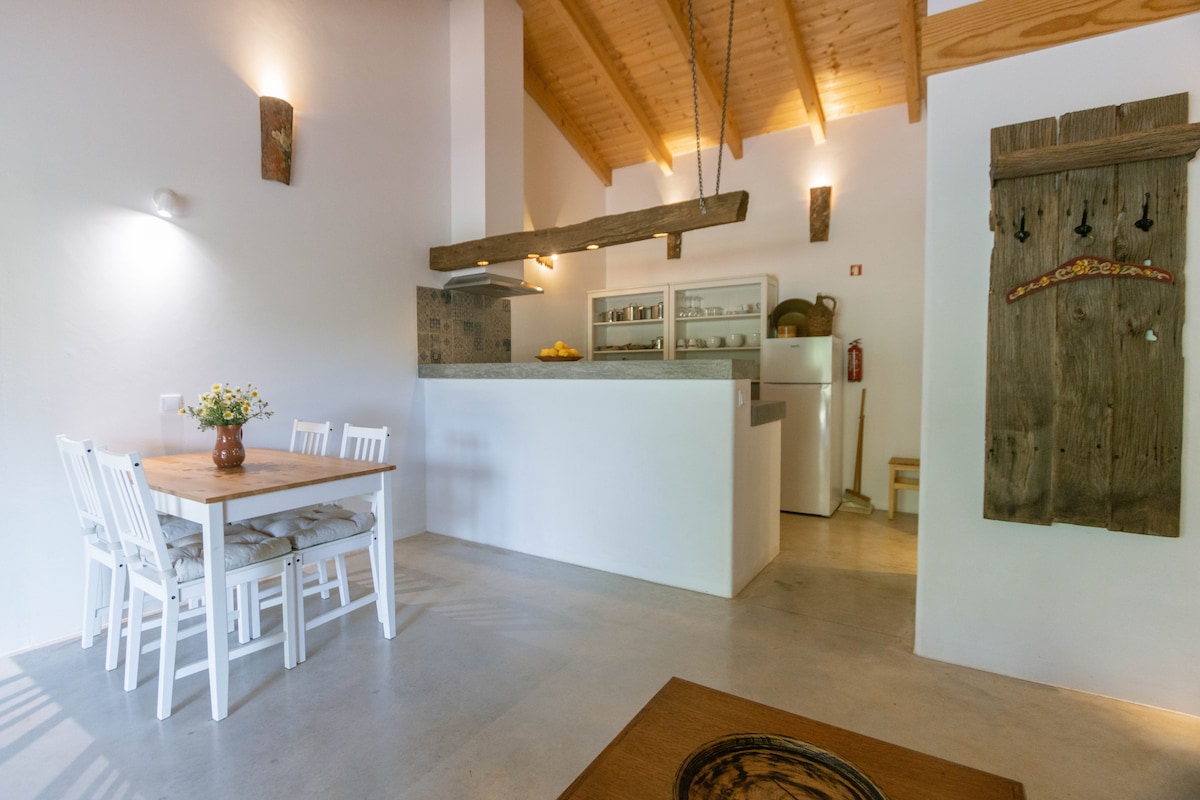 Respire fundo em Ahua Portugal. A casa está localizada no meio da encosta com vistas espetaculares sobre o Vale Seixe e a apenas 5 km da Praia de Odeceixe. A casa é nova em folha com todos os confortos, incluindo: aquecimento de piso, Internet de fibra de alta velocidade, colchões boxspring confortáveis e pátios ao ar livre generosos. Na propriedade de 180.000 m² você estará completamente privado com acesso ao rio Seixe e belos passeios enquanto contempla a Serra de Monchique.