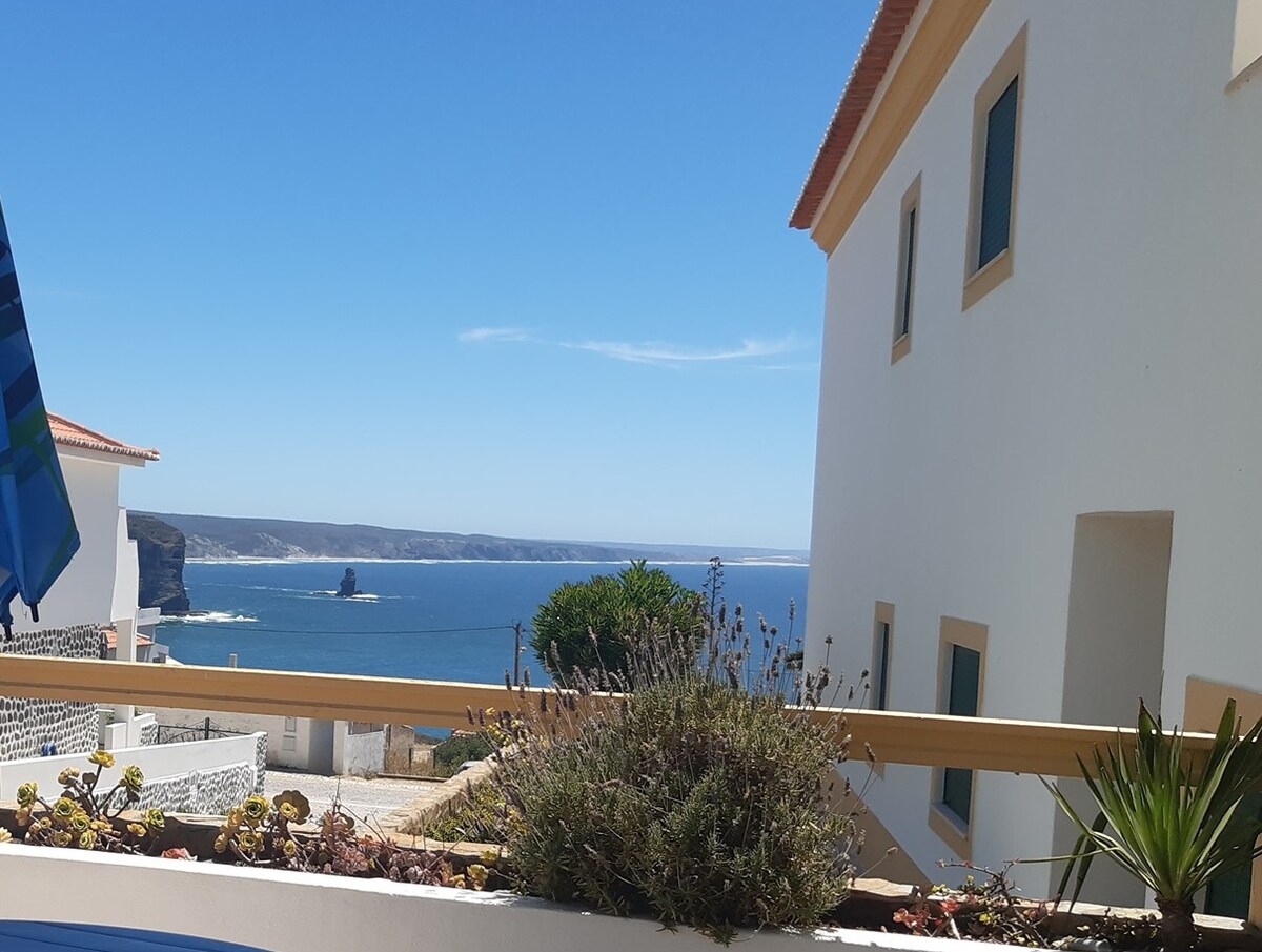 Casa de praia , localizada na praia de Odeceixe, considerada uma das 7 Praias mais bonitas do País. Vencedora na Categoria de Praia de Arribas. Casa com ótima vista e localização, ideal para casais com filhos. Simples e acolhedora. A menos de1 minuto da praia. . Sala e quartos com vista mar/ rio.. A casa não possui varanda, possuí sim um pátio de entrada, onde é colocada uma mesa e cadeiras. Este pátio não tem vista para o mar. Será um enorme prazer receber a sua visita.