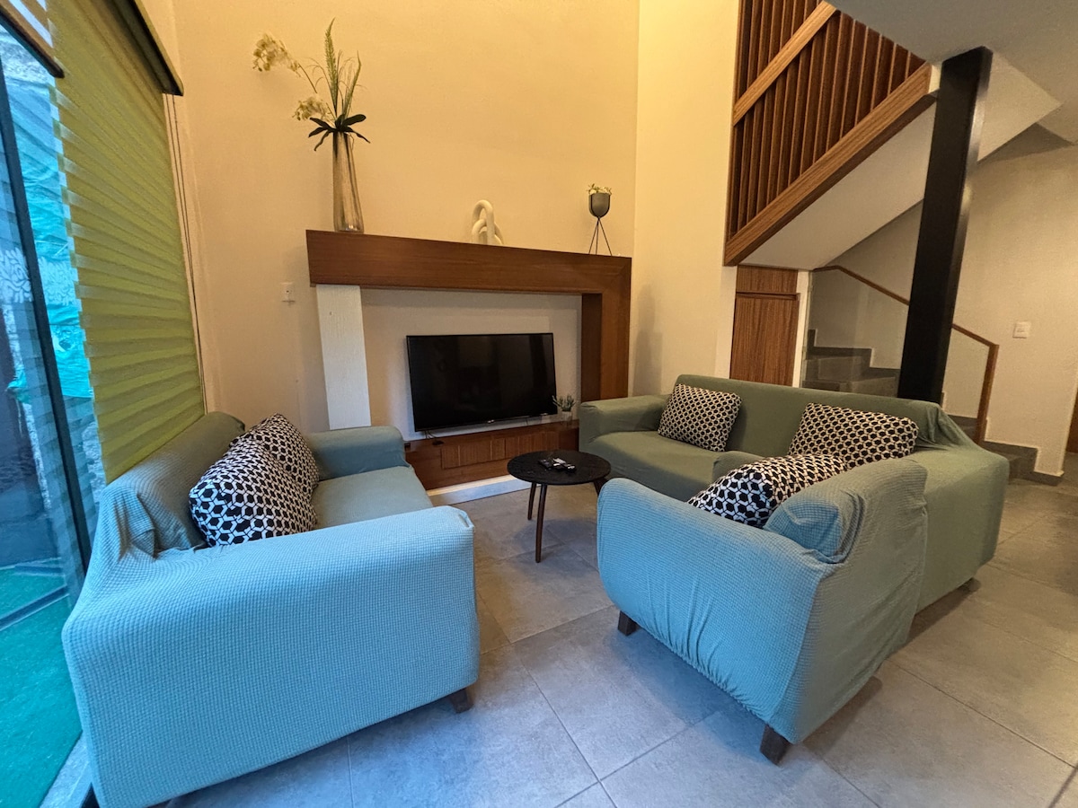 Casa segura e silenciosa, 3 quartos para até 6 pessoas, cozinha equipada, estacionamento dentro do condomínio. Cercada pelas principais avenidas do município e a apenas 10 minutos dos principais centros comerciais Town Square e Galerías Metepec. Metepec, cidade mágica e berço da árvore da vida, tem uma grande tradição de cerâmica e o centro fica a apenas 8 minutos de carro. O espaço fica a 15 minutos do aeroporto e a 30 minutos da estação rodoviária e do centro de Toluca.