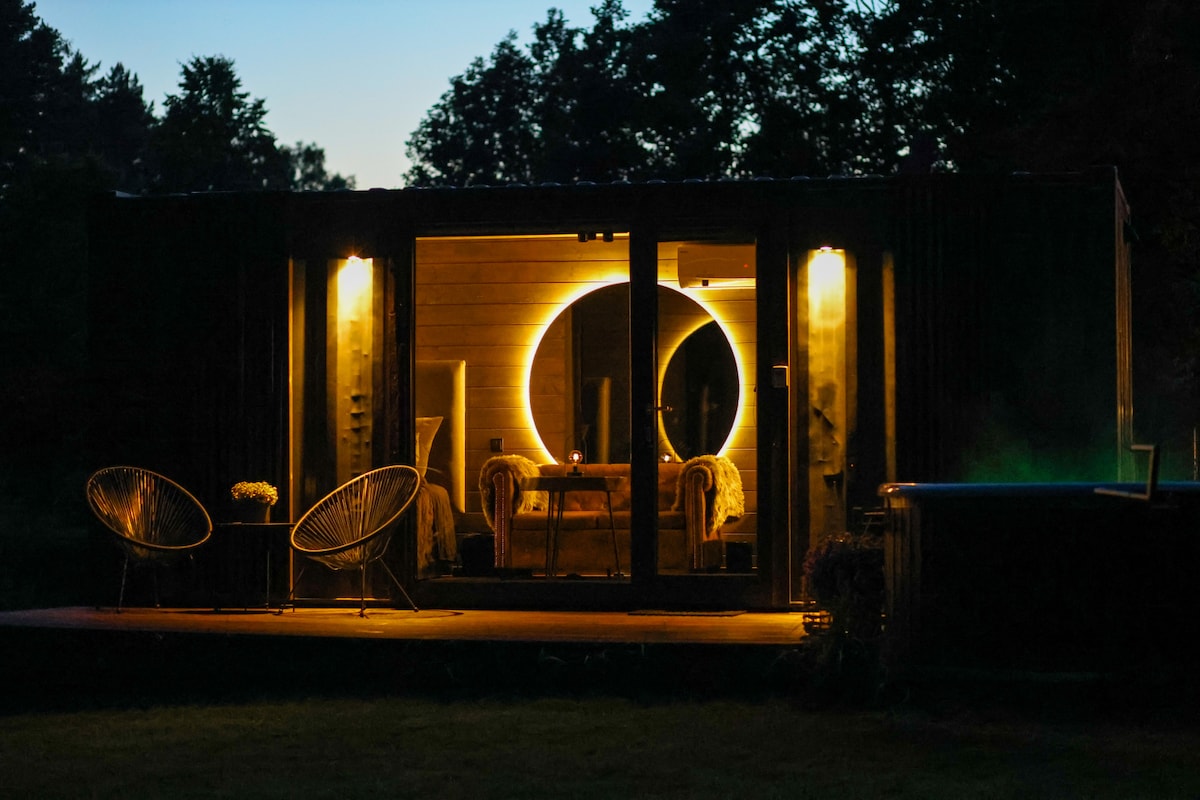 Você poderá desfrutar da natureza, conhecer pássaros e animais da floresta. Você terá uma casa de luxo que é construída dentro de um contêiner marítimo. Você ficará em uma cabana com uma bela vista. O espaço: - xampu, condicionador, sabonete - toalhas - roupa de cama, cobertores, muitos travesseiros - chá, café, sal, óleo vegetal, etc. - banheira de hidromassagem - sauna Acesso dos hóspedes: Check-in: 15h Check-out: 12h. Serviços com custo extra: acampamento, quadriciclo, sauna, banheira de hidromassagem Localizado a 4 km da cidade de Limbaźi, a 77 km de Riga