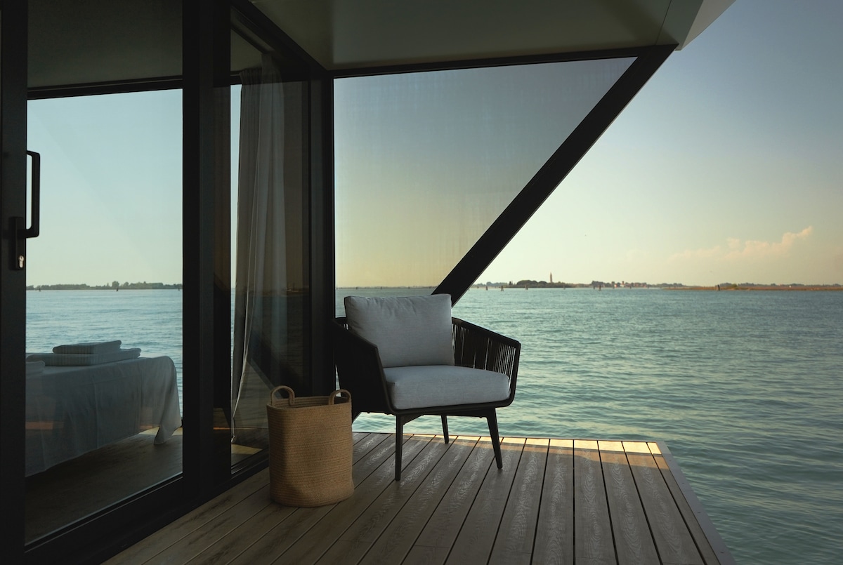 Algumas experiências não podem ser repetidas. Imagine acordar na água, com a lagoa veneziana se estendendo silenciosamente do lado de fora da sua janela. Sem vizinhos, sem multidões. Apenas céu, água e Veneza. O AQVA é o primeiro loft aquático flutuante de Veneza — uma casa com design flutuante, totalmente privativa, disponível para 2 a 6 hóspedes. Não é um hotel. Não é um barco. É algo que não existe em nenhum outro lugar do mundo. Disponível também no inverno: o AQVA é totalmente aquecido e oferece um ambiente mágico durante todo o ano.