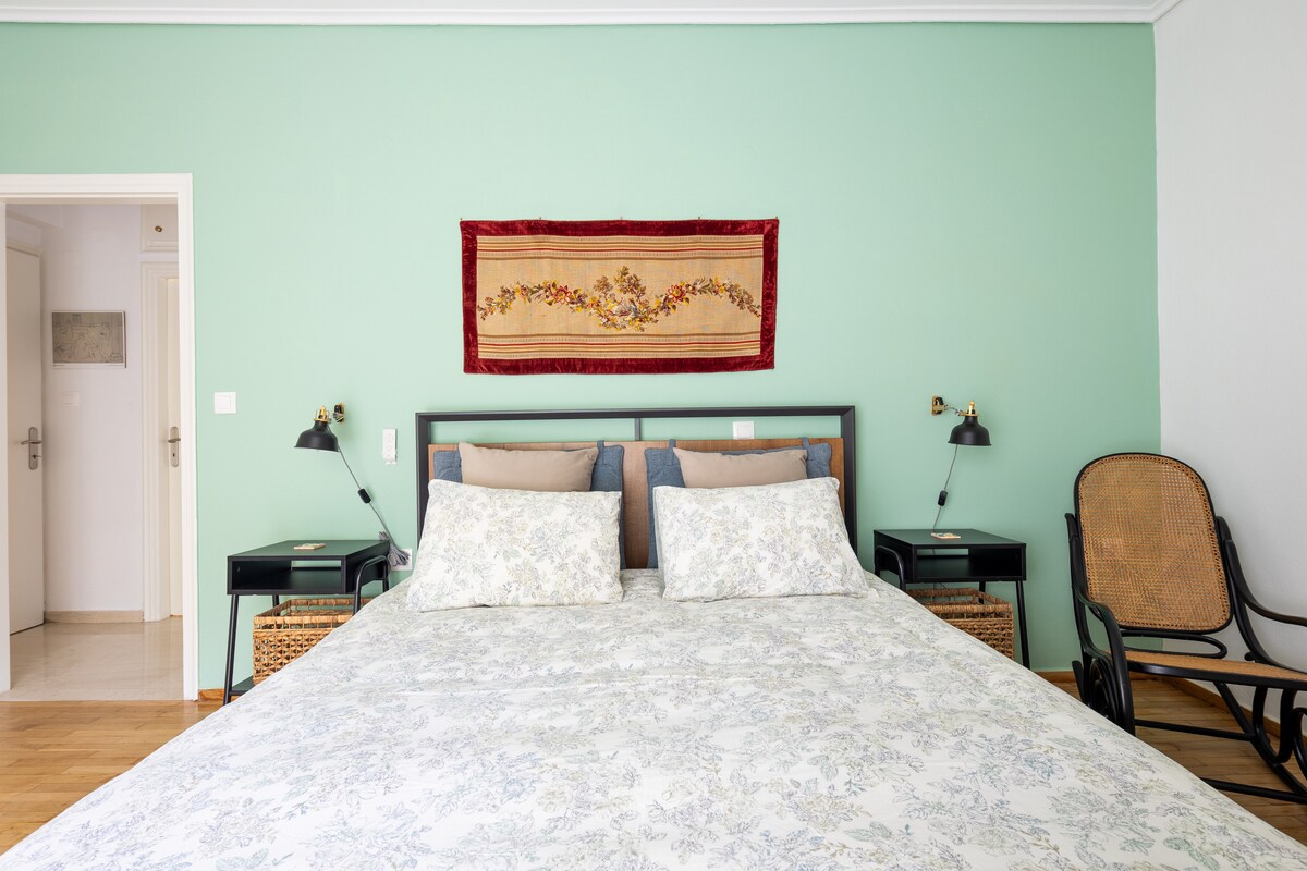 @Home é um apto de design minimalista, que faz você se sentir como em casa, quando você estiver longe de casa. Fica no 2º andar de um prédio de apartamentos dos anos70, com uma arquitetura progressista por sua época e um belo pátio no meio. A apenas 3 minutos a pé da Estação de Metrô Cholargos.