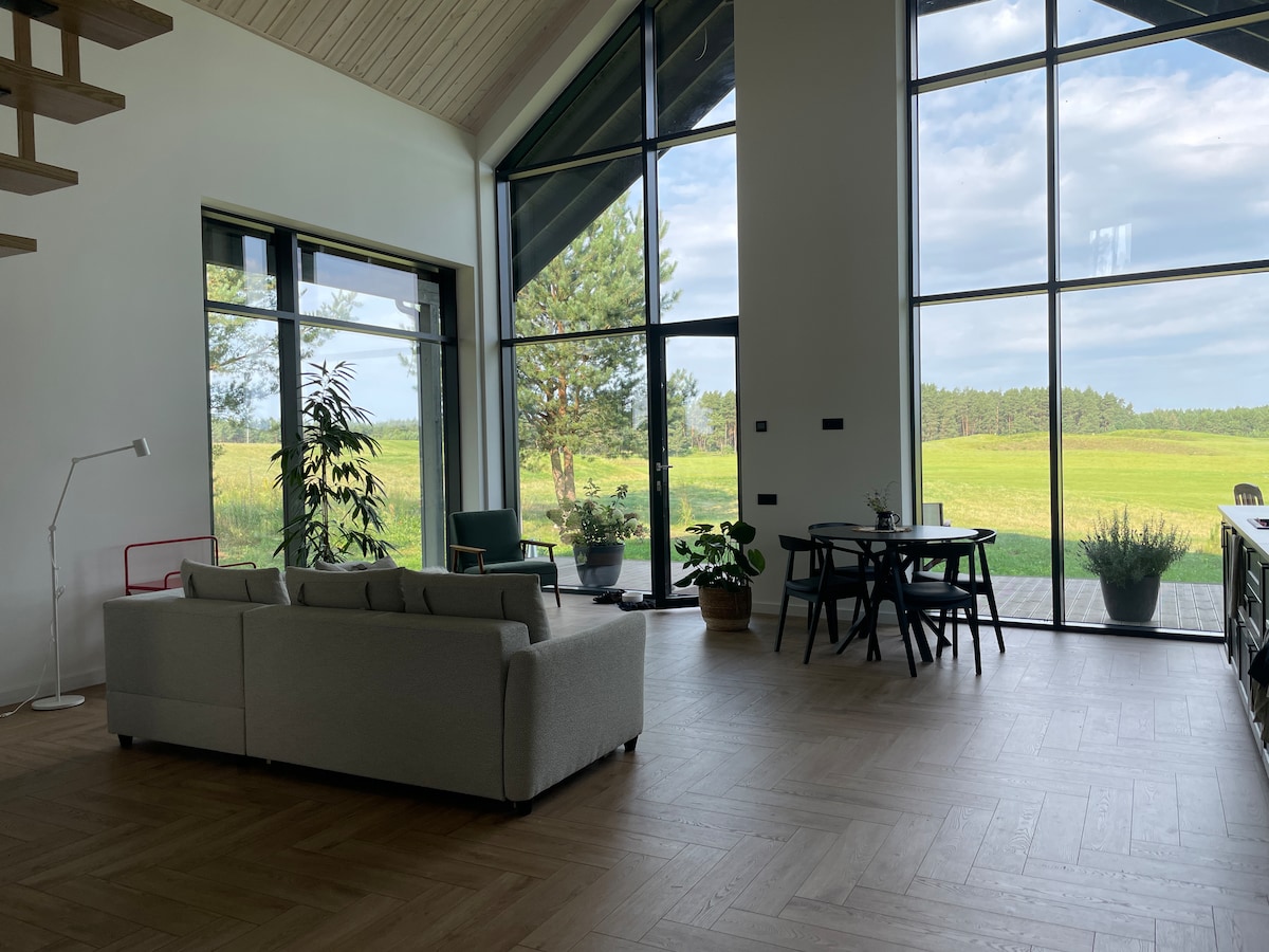 Experimente a tranquilidade e o conforto com vista para o campo de golfe de Vilkės Bem-vindo ao seu refúgio tranquilo — perfeito para viajantes solo, casais ou famílias que procuram uma escapada única cercada pela natureza e vistas excepcionais. Reserve agora e experimente uma viagem única onde conforto, natureza e relaxamento se encontram.