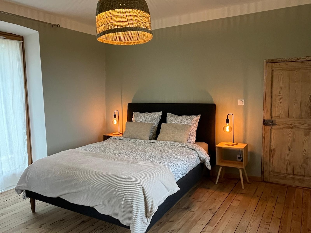 Esqueça suas preocupações neste espaço espaçoso e sereno. Ponto de partida ideal para caminhadas ou ciclismo. Bicicletas podem ser devolvidas à nossa casa. Apartamento remodelado de 50m2 no piso térreo com vista direta para a tranquila praça da aldeia de Saint Jodard. loja de conveniência a 20 M de DISTÂNCIA Roupa de cama nova; alta qualidade! Podemos adicionar uma cama extra mediante solicitação.