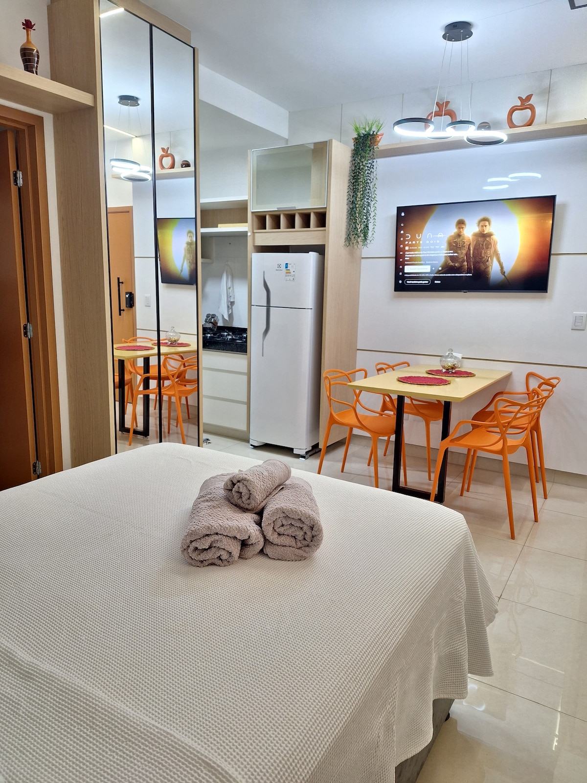 HIT SKY, Studio aconchegante, moderno e funcional, ao lado do Hospital Ânima e em frente a UniEvangelica, pensado para oferecer conforto e praticidade durante sua estadia. O espaço é bem iluminado, organizado e equipado para receber hóspedes que buscam descanso, trabalho ou lazer. Tudo preparado para que você se sinta em casa desde o primeiro momento. Aqui você encontra tranquilidade, conforto e praticidade em um só lugar.