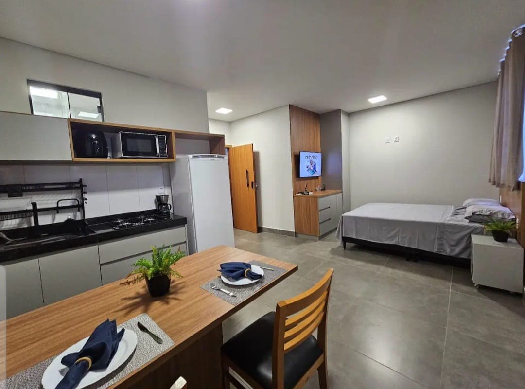 HIT SKY, Studio aconchegante, moderno e funcional, ao lado do Hospital Ânima e em frente a UniEvangelica, pensado para oferecer conforto e praticidade durante sua estadia. O espaço é bem iluminado, organizado e equipado para receber hóspedes que buscam descanso, trabalho ou lazer. Tudo preparado para que você se sinta em casa desde o primeiro momento. Aqui você encontra tranquilidade, conforto e praticidade em um só lugar.