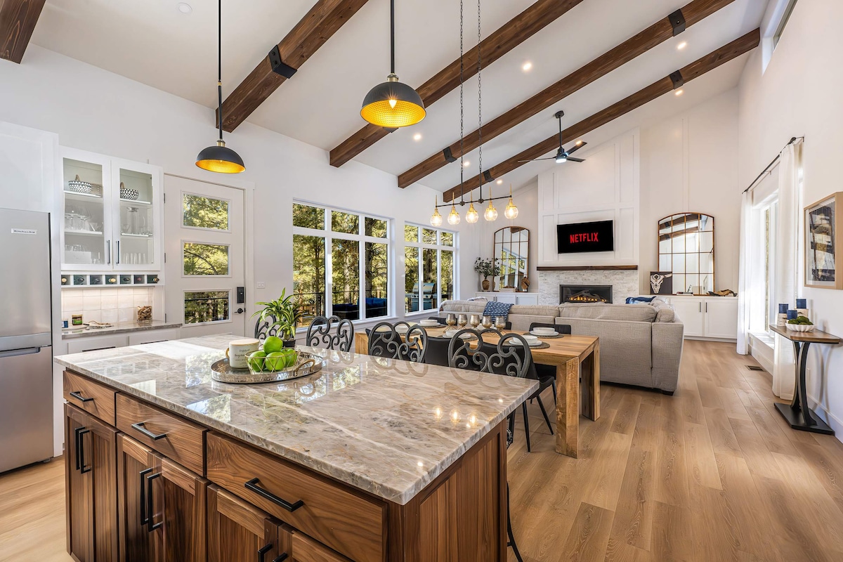 Desfrute de uma inesquecível escapada Angel Fire nesta casa de luxo recém-construída e personalizada de 3 quartos, idealmente localizada em uma área acessível com TUDO o que você precisa para uma estadia perfeita. • Deck ao ar livre com vistas deslumbrantes! • Jacuzzi • Churrasqueira • Pátio/Jantar no exterior • Jogos de tabuleiro • Cozinha totalmente abastecida • Cafeteira de filtro e Keurig • Lareira interna • TVs em cada quarto com banheiro privativo • Máquina de lavar e secar • Estacionamento amplo