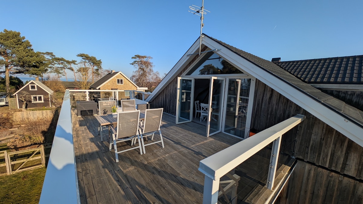 Sótão aconchegante com terraço de 40 m² e vista para o mar